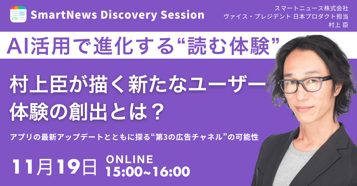 | イベント名 | 【AI活用で進化する"読む体験"】村上臣が描く新たなユーザー体験の創出とは? |